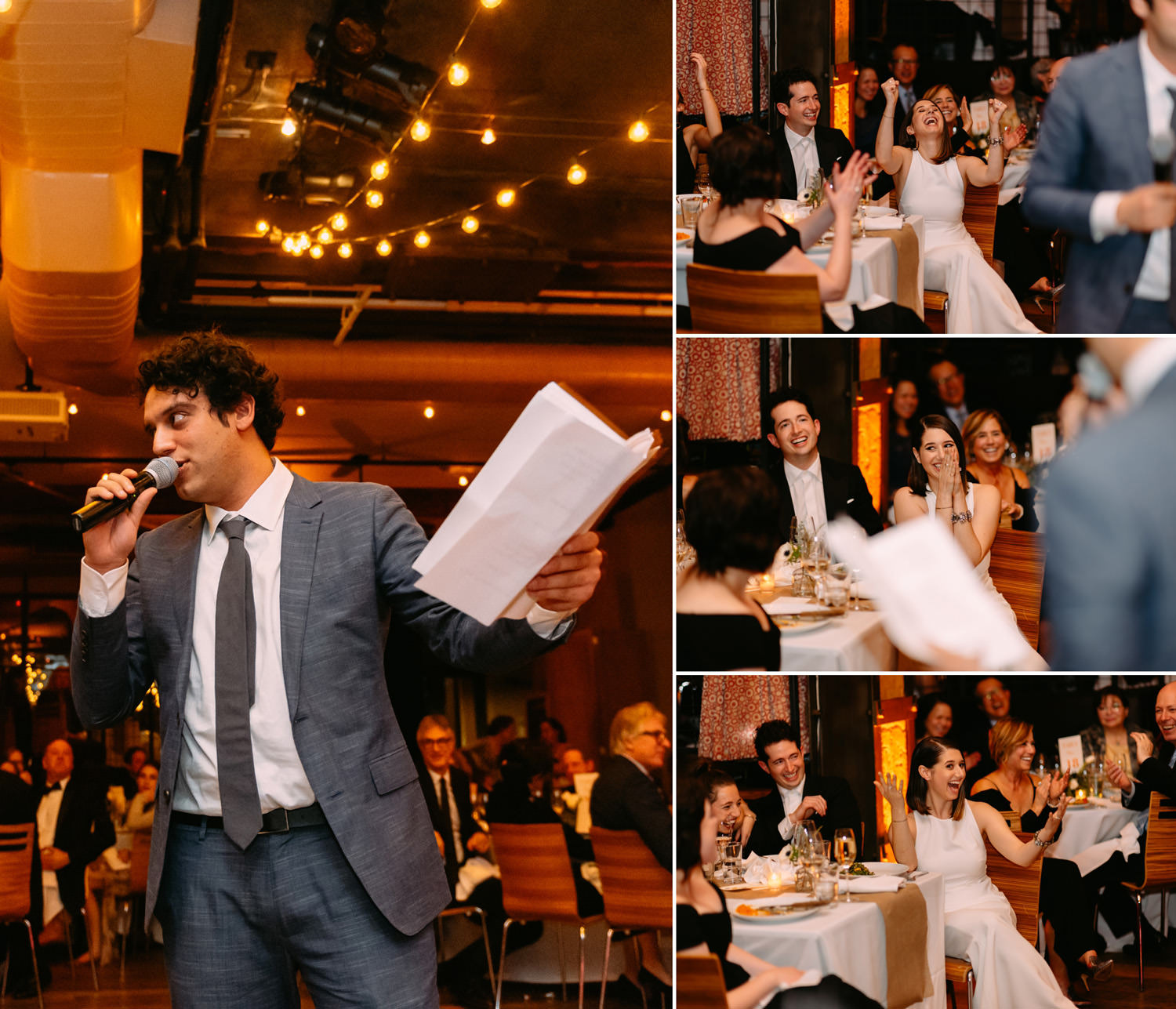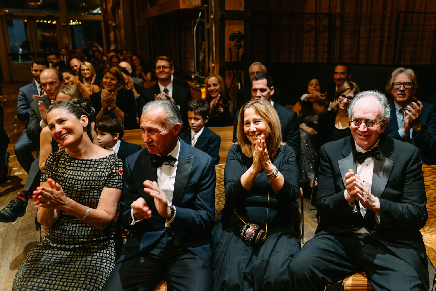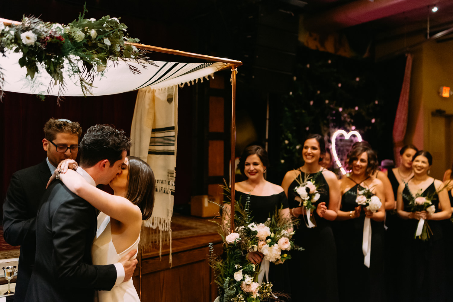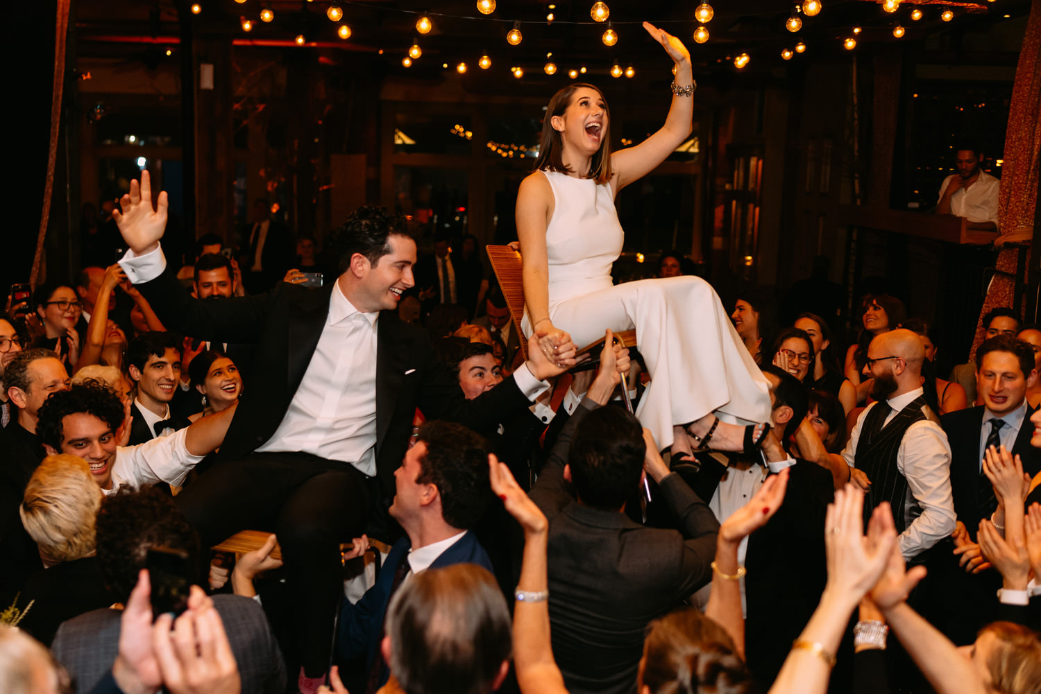The atmosphere of love and mutual respect was strongly felt. A lot of guests was moved to tears and I’m not surprised! After that a great party began! Despite traditional Jewish ceremony, this was a truly New York modern wedding! A few DJs played music and it was great, I must admit. What was the coolest, friends and family prepared a surprise flash mob! A couple of toasts were raised, there were moving speeches, and two talented singers performed on stage! One of them was Rachel Brown and the other was Annie Simon. Both are close friends to Mia and Julian.
