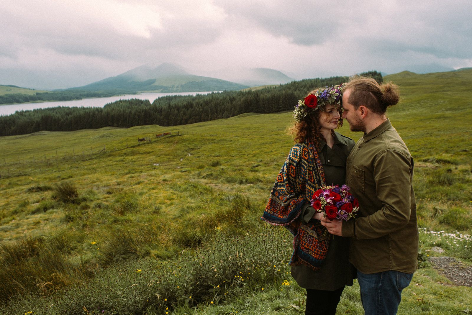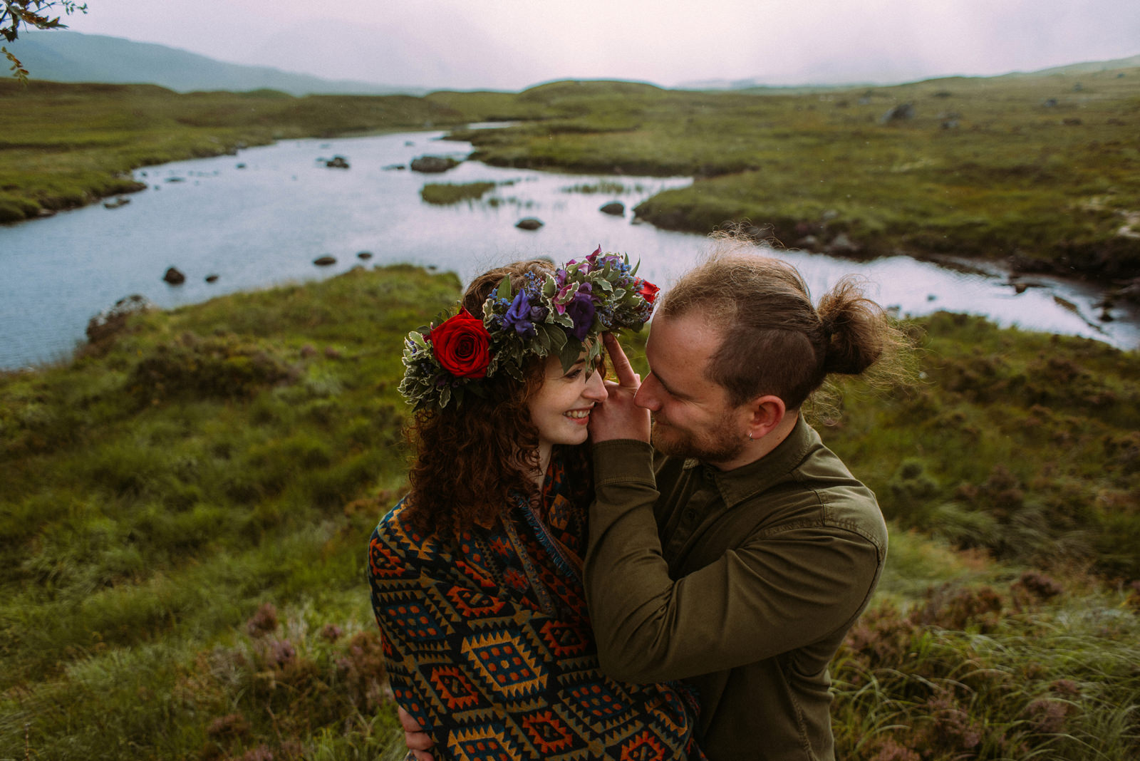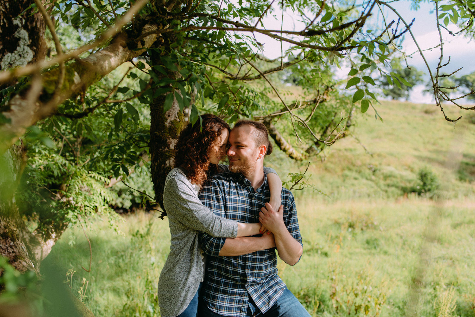 We started our trip in the morning from some hidden mysterious canyon, close to the place they live, where the mountain stream water was incredibly red and the greenery deep and sort of tropical in color. That was a great start and nice warm up for all of us. After that we hit the road and get to the beautiful and windy Scottish Highlands. I had some visions of that destination before in my mind and some expectations, but literally every single view was better from the previous one and we all enjoyed that trip a lot. You have to be lucky to get what we got that day. It was raining pretty much all day and we had few nice gaps without rain that we successfully took advantage of. We have finished our photoshoot next day with a nice morning walk in Clyde Muirshell Regional Park, which was only about one hour drive from Glasgow city area. This time we did not have to worry about rain and wind. Only few of the ships we have passed on our way were a bit too much interested what we were doing there ;) What an ideal two-day plan for a wedding photographer Scotland.